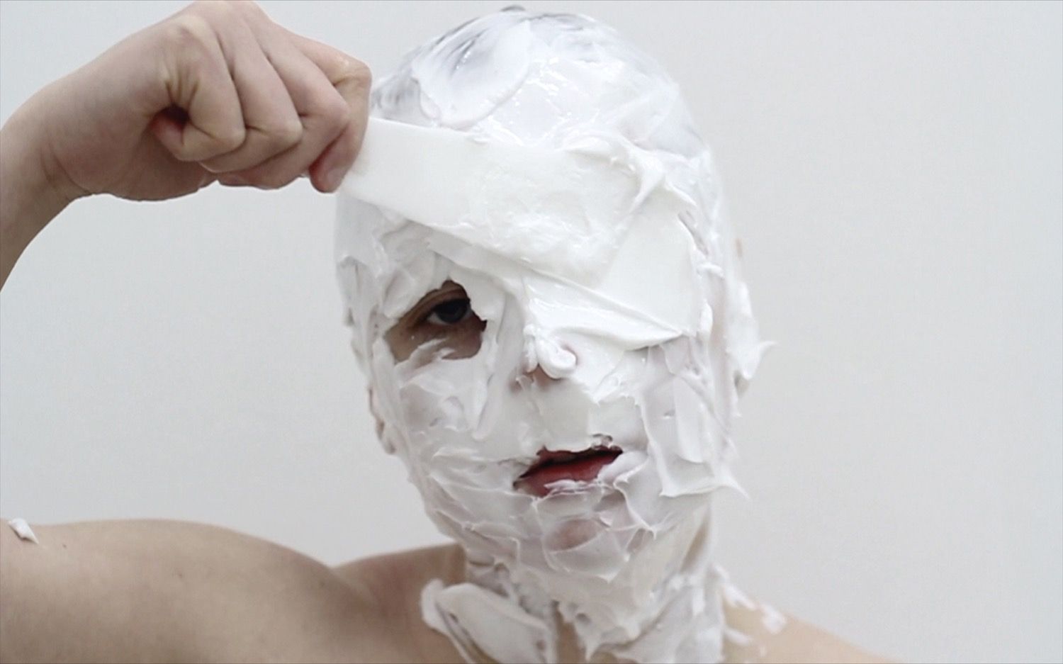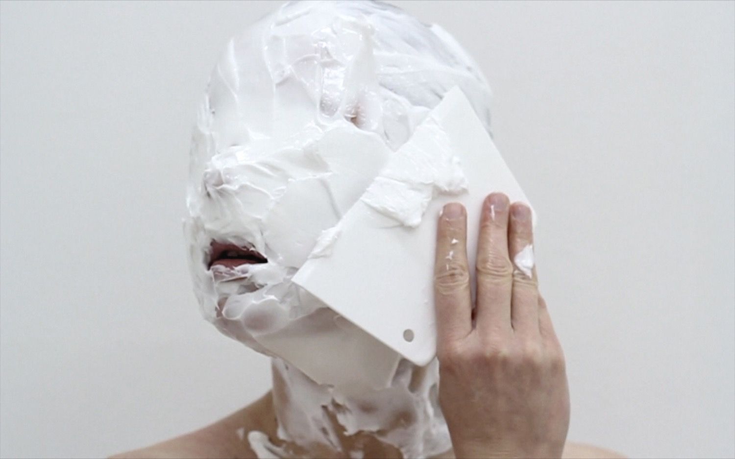 Through applying increasing amounts of facial cream to their face, the artist levels out all uneven parts of her face, creating a smooth and unresistant surface. Increasingly, vital functions of her face become covered and dysfunctional. The work was inspired by a stay in Gangnam and refers to the equally smooth urban and facial surfaces on the road side ads.